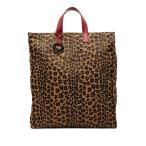 フェンディ レオパード トートバッグ ハンドバッグ 8BH173 ブラウン レッド キャンバス レザー レディース FENDI 【中古】