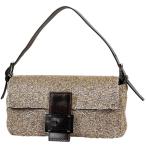 フェンディ FENDI ズッカロゴ マンマバゲット ハンドバッグ ワンショルダー 肩掛け ビーズ ショルダーバッグ レザー ベージュ ブラウン 26424 レディース 中古
