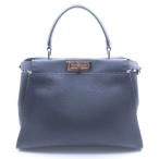 FENDI フェンディ ハンドバッグ PEEKABOO ピーカブー アイコニック エッセンシャリー セレリア レザー 8BN302 アスファルト 2way 中古 美品