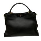 フェンディ ピーカブー小 レザー 黒 ショルダーストラップ付ハンドバッグ 美品@ 314