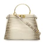 FENDI フェンディ ピーカブー アイコニック ミディアム コッコ ヒマラヤ ハンドバッグ 2WAY ショルダーバッグ クロコ ホワイト ゴールド金具 8BN290