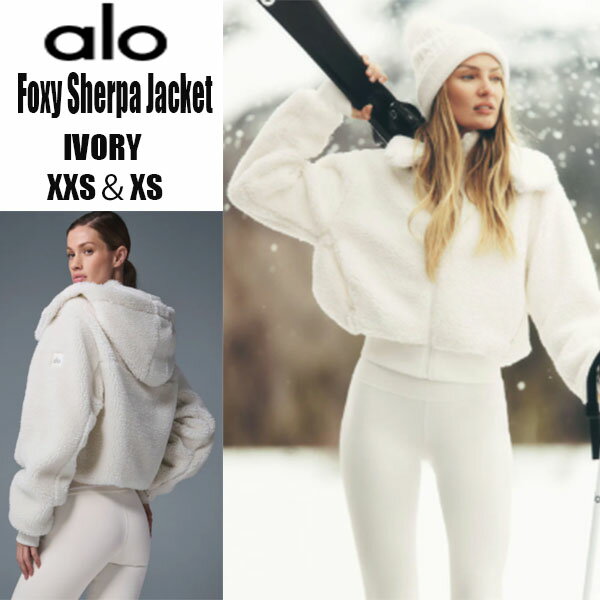 【在庫有り】alo Foxy Sherpa Jacket フォクシーシェルパジャケット Ivory XXS&XS 2サイズ アウター ヒップ丈 取り外し可能なフード 高めの襟 フロントジップ リブ編みの袖と裾 ゆったりとした着心地 ショート丈 短丈 モコモコ ふわふわ ファーコート アウター コート