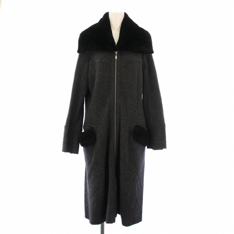 【中古】フォクシー FOXEY レディスタンダード ヌートリアファー ロングコート アウター ビックカラー ストレッチ ジップアップ 切替 ウール シルク混 カシミヤ混 38 チャコールグレー /BB レディース 【ベクトル 古着】 250713