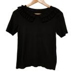 美品 FOXEY フォクシー ラッフル ピーターパン 半袖 ニット トップス カットソー 36719 38 ブラック レディース 古着 中古