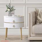 【並行輸入品】O&K FURNITURE 大理石ラウンドエンドテーブル 引き出し2個付き ホワイト&ゴールド Marble Round End Table with 2 Drawers