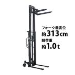 ハンドフォークリフト 昇降 最高位3130mm 1000kg フォーク長さ990mm 幅315〜730mm 黒 伸縮 ハイアップ スタッカー 手動走行式 油圧式