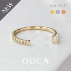 OUCA ダイヤモンド リング 指輪 プリンセスカット フォークリング 18金 10金 K18 K10 女性 レディース 誕生日 プレゼント 金属アレルギー 対応 ピンクゴールド