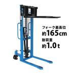 ハンドフォークリフト 昇降 最高位1650mm 1000kg フォーク長さ990mm 青 ハイアップ スタッカー ブルー stacker1016blue