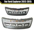 【並行輸入品】 オフロード 車 カスタム パーツ ABS グレー ブラック フロント アッパーバンパーグリル フォードエクスプローラー 2012 2013 2014 2015 LEDライ