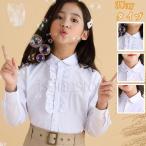 長袖 スクール シャツ キッズ ス ホワイト ドレスシャツ レース フリル襟 フォーマル 女の子 子供服 ジュニア通園 通学 制服 学生服