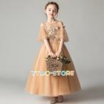 子供ドレス ピアノ発表会 ジュニアドレス ロングドレス フォーマルドレス パーティードレス 高級 豪華 上品 結婚式 七五三 シャンパン 100~160cm お誕生会