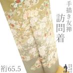 訪問着 着物 未使用 フォーマル 正絹 袷 手描き友禅 薄緑地 四季の花 新古品 仕立て上がり 身丈162 裄丈68.5 Lサイズ みやがわ sb17194