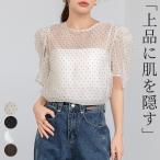 ブラウス レディース トップス きれいめ オフィス フォーマル ギャザー 6分袖 シアー パワーショルダー パフスリーブ 薄手 白 黒 春夏