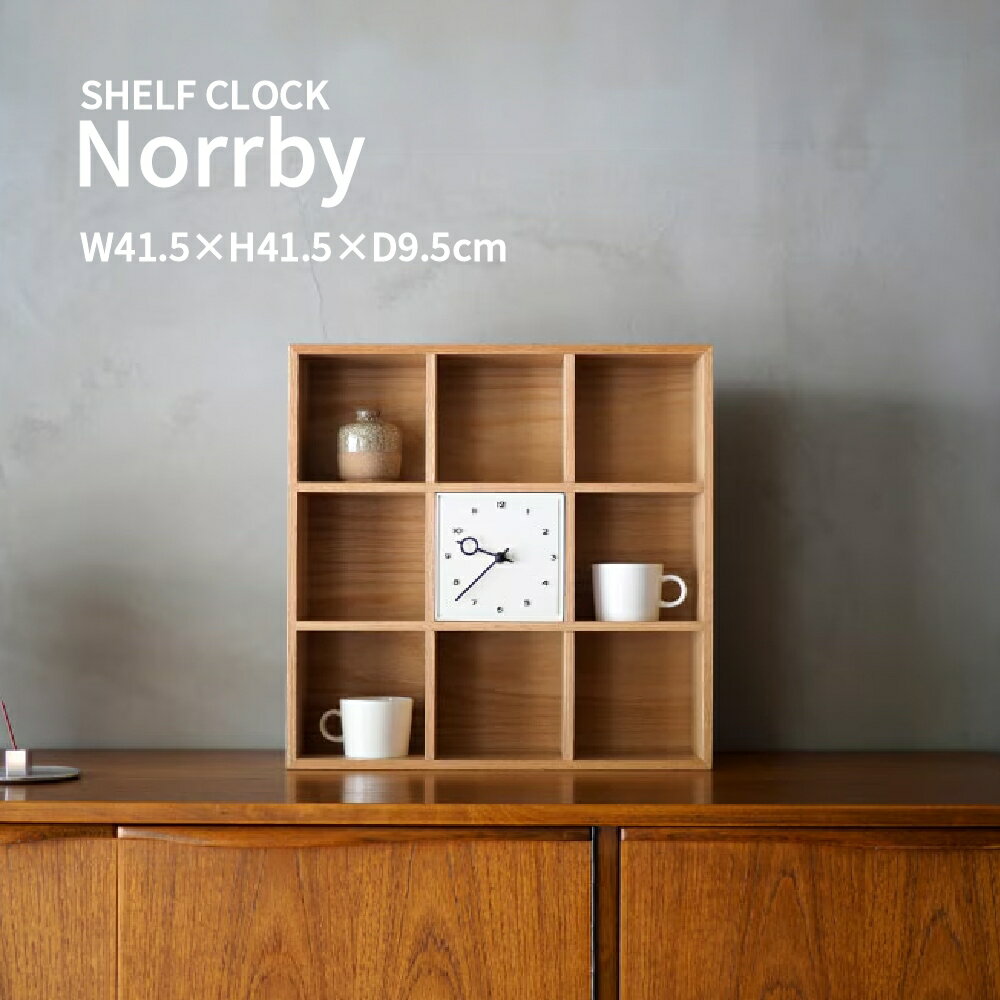 置き時計 シェルフ時計 棚付き時計 ディスプレイラック 飾り棚 収納ラック インテリア時計 卓上時計 おしゃれ 北欧 ナチュラル ジャパンディ 木目 見せる収納 コレクションラック 小物収納 家具調 スイープムーブメント 静音 Norrby シェルフクロック ノルビ