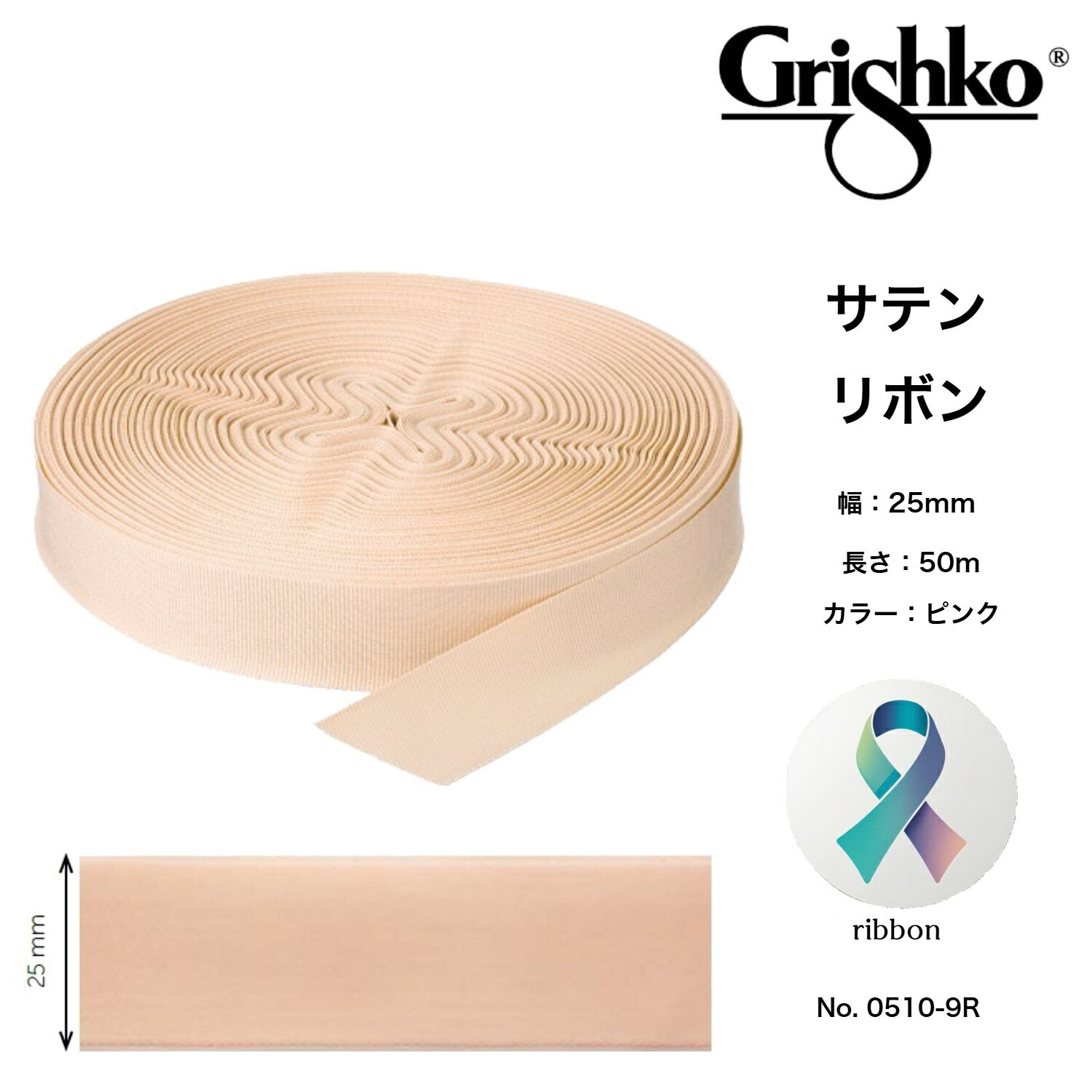 フットアクセサリー シングルフェイス サテンリボン 幅25mm・長さ50m巻 グリシコ 0510/9R バレエ シューズアクセサリー フットケア用品 足ケアグッズ