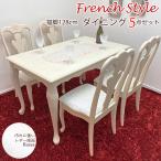 猫脚 幅128cm ダイニングテーブル5点セット 4人掛け クラシック調 PVCレザー 座面Roses