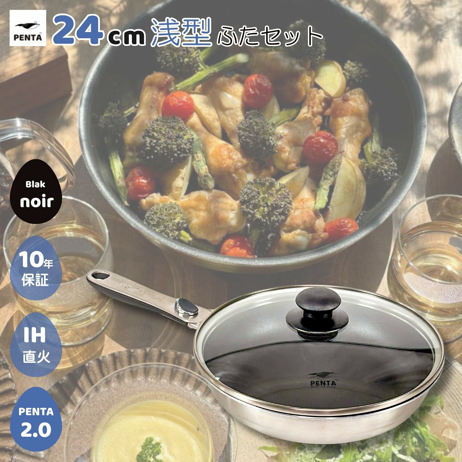 【5周年記念20%OFFクーポン】【 公式 】 ペンタ 2.0 フライパン 2種5点セット 24cm 浅型 深型 蓋付き 王様フライパン PENTA ブラックノワール 日本製 取っ手が取れる IH対応 ガス対応 オーブン対応 PFOAフリー 焦げ付きにくい こびりつかない ギフト