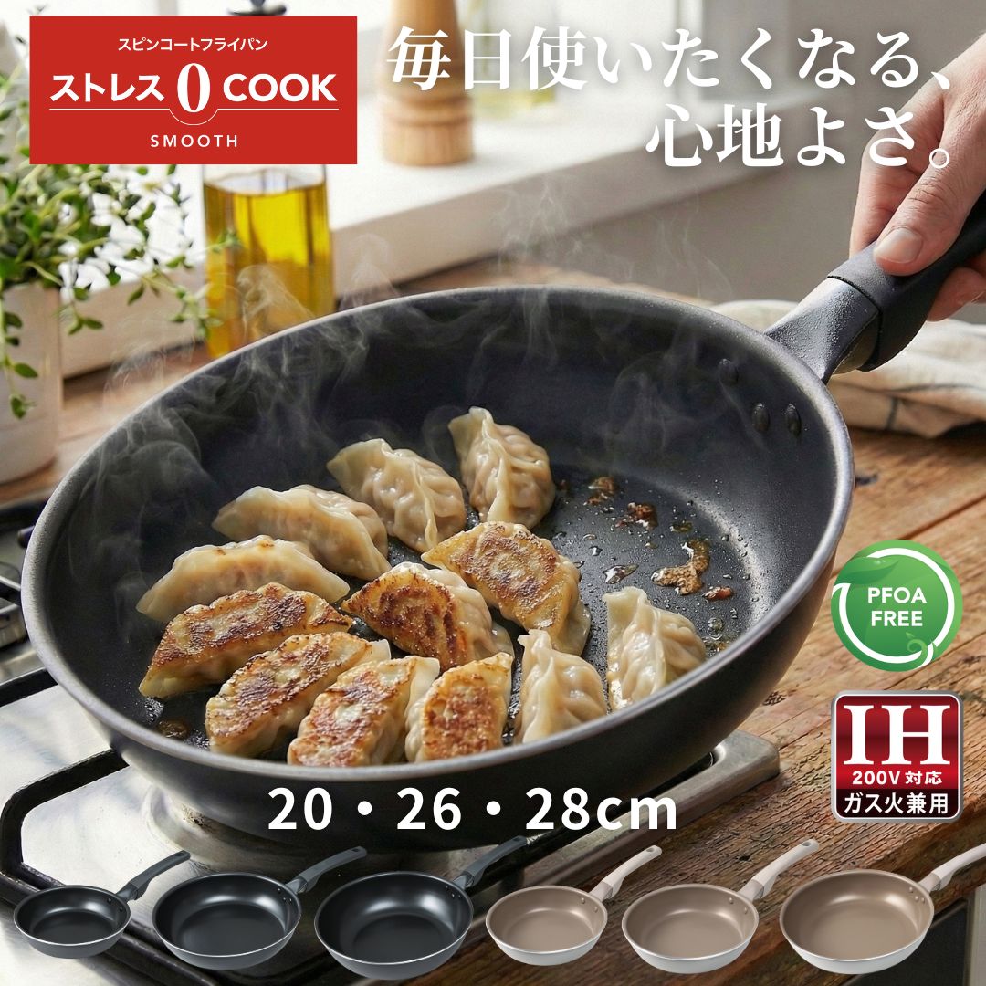 フライパン 28cm 26cm 20cm ih IH対応 ガス火対応 PFOAフリー 軽量 こびりつきにくい 取っ手一体型 お手入れ簡単 炒め鍋