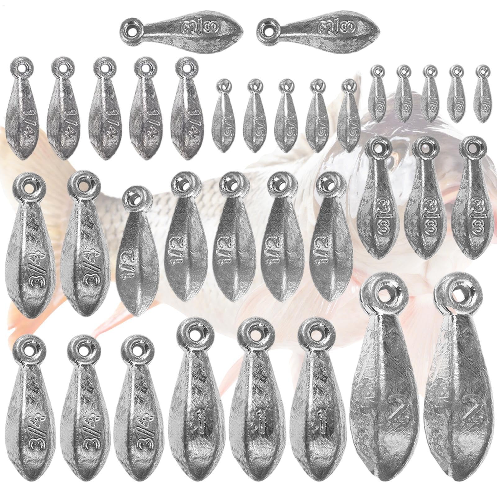 フィッシングシンカー | 海水釣り用おもり | 35個釣りアクセサリーセット フライフィッシング トローリング 淡水 バス ナマズ トラウト アイスフィッシング用