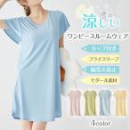 ルームウェア ワンピース カップ付き ナイトブラ一体型 部屋着 ナイトウェア ホームウェア パジャマ レディース フライスリーブ 半袖 爆買