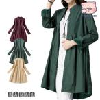 シャツワンピース 裏ボア 冬 冬服 レディース トップス ワンピース シャツ ブラウス 長袖 大きいサイズ ギャザー 裏ボアシャツワンピース