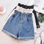 ショートパンツ レディース デニム ゆったり 短パン ハイウェスト シンプル ファッション ショーパン カジュアル ウェストゴム ハーフパンツ 半ズボン