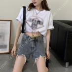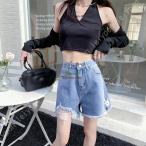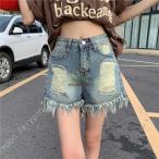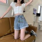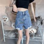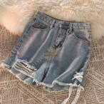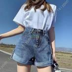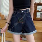 レディース ショットパンツ デニム 短パン ショーパン ホットパンツ ミニ丈 ハイウエスト着痩せ韓国 デニム短パン ゆったり デニムショート ジーンズ