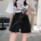 ハイウエスト デニム ショートパンツ レディース ボトムス ズボン 春 夏 大きいサイズ 可愛い お洒落 カジュアル ストリート 黒 白 薄手 シンプル 無地