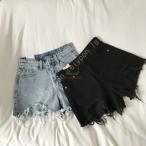 裾切りっぱなしダメージデザイン デニムショートパンツ デニムパンツ ダメージデニム クラッシュデニム ショートデニム ショート丈 ショートジーンズ