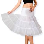 パニエ レディース フラダンス用 3段フリル ボリューム ソフトチュール裏地付き アンダースカート ひざ丈 ホワイト S (ホワイト, S)