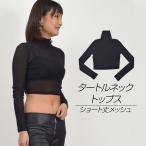ダンストップス タートルネックショート丈シースルートップス ダンス 衣装 ハイネック 長袖 インナー メッシュ FI90913 [M便 1/3]