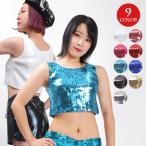 スパンコール 衣装 トップス キャミソール 片面 伸縮素材 ヒップホップ ダンス ハロウィン コスプレ コスチューム ステージ衣装 HQ77151 [M便 1/2]