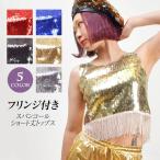 ダンス衣装 トップス フリンジ ショート丈 インナー タンクトップ キャミソール スパンコール 衣装 ノースリーブ ダンス ハロウィン FN79215 [M便 2/3]