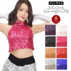 ダンス衣装 スパンコール ショート丈トップス 無地 タンクトップ キャミソール ノースリーブ インナー ダンス着 発表会 ハロウィン コスプレ FN79214 [M便 2/3]