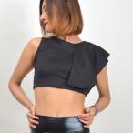 ダンストップス 肩フリルデザイントップス ダンス 衣装 ヒップホップ ショート丈 ノースリーブ 無地 QA56123 [M便 2/3]