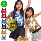キッズ 子供 ダンス トップス タンクトップ 無地 チア ダンス着 スパンコール 派手 ロゴ入り 伸縮素材 ノースリーブ ショート丈 FB95195 [M便 1/2]