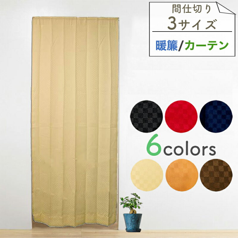 のれん カーテン ロング 仕切り 透けないのれんカーテン 間仕切り 階段 部屋 目隠し のれん棒 突っ張り棒 カーテンフック フラットカーテン 押入れ ブラック レッド ネイビー アイボリー オレンジ ブラウン 市松模様 市松柄 シンプル