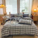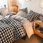 ベッドカバー 布団カバー セット フラットシーツ 掛け布団カバーチェック柄 シングル セミダブル ダブル おしゃれ 寝具セット ボックスシーツ 枕カバー 北欧風