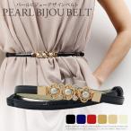 送料無料 細ベルト レディース 細い ベルト 黒 ビジュー パール 細ベルト ベルトバックル パール