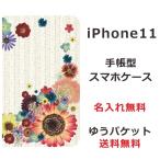 アイフォン11 手帳型ケース iPhone 11 ブックカバー らふら フラワーアレンジカラフル