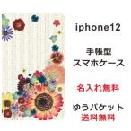 iPhone12 手帳型ケース アイフォン12 ブックカバー らふら フラワーアレンジカラフル