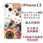 iPhone13 アイフォン13 らふら 名入れ スマホケース ラインストーン スマホカバー 押し花風 フラワーアレンジカラフル