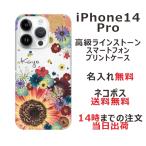 iPhone14 Pro アイフォン14プロ らふら 名入れ スマホケース ラインストーン スマホカバー 押し花風 フラワーアレンジカラフル