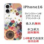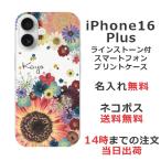 iPhone16 Plus アイフォン16プラス らふら 名入れ スマホケース ラインストーン スマホカバー 押し花風 フラワーアレンジカラフル