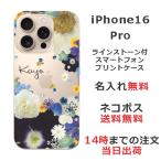 iPhone16 Pro アイフォン16プロ らふら 名入れ スマホケース ラインストーン スマホカバー 押し花風 フラワーアレンジ
