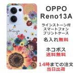 OPPO Reno13A オッポ レノ13A らふら 名入れ スマホケース ラインストーン スマホカバー 押し花風 フラワーアレンジカラフル