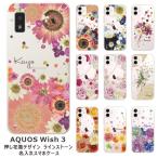 AQUOS Wish3 アクオスウィッシュ3 SH-53D A302sh らふら 名入れ スマホケース ラインストーン スマホカバー 押し花風 フラワーアレンジ