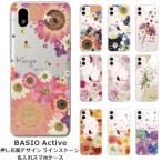 BASIO Active SHG09 ベイシオアクティブ らふら 名入れ スマホケース ラインストーン スマホカバー 押し花風 フラワーアレンジ