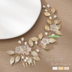 ヘッドドレス コーム リーフ フラワー アレンジ小物 二次会 発表会 結婚式 花嫁 和装 着物 卒業式 ウェディング ブライダル シルバー ゴールド ピンクゴールド