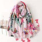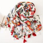 スカーフ フラワー 大判 フリンジ 日焼け止め 綿麻風 植物柄 図案プリント レディース ロングスカーフ 大判ショール 薄手 ビーチ 紫外線防止 日焼け止め